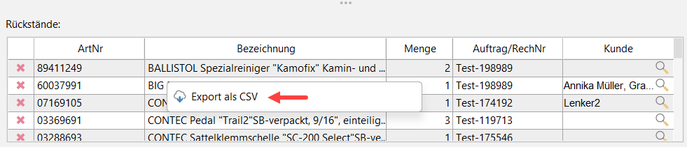Dasselbe funktioniert auch für die Rückstandsliste: